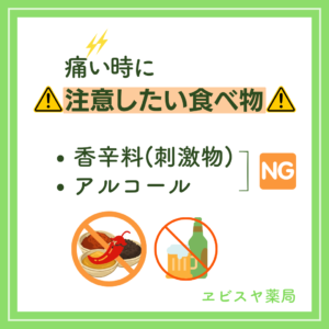 刺激物(香辛料)やアルコールは特に控えてください!