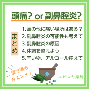 頭だけじゃなく他に痛い場所があった時は、副鼻腔炎の可能性も考えてみてください。
