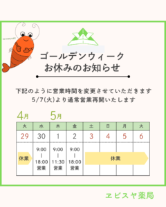 ゴールデンウィーク期間のお休みのお知らせです。
